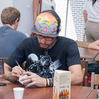 Os participantes foram desafiados a criar "doodles" em uma timeline de acontecimentos usando canetas e copos de isopor, a fim de demonstrar como seriam os primeiros passos de uma animação. Para encerrar, os artistas elaboraram uma releitura do personagem Mickey Mouse - criação de Walt Disney - e um personagem como mascote da Hamburgueria Street Owners.